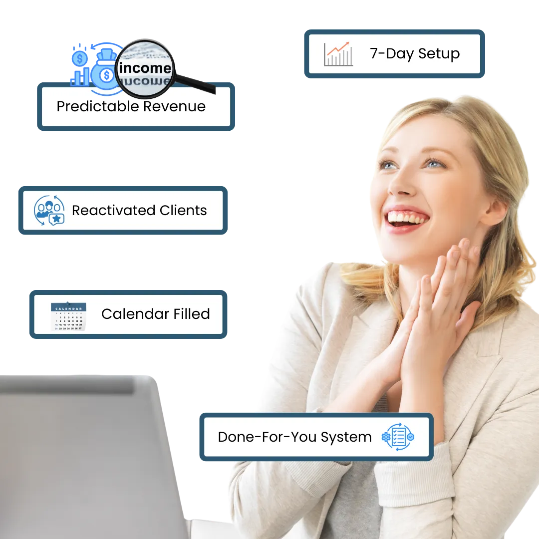 That’s why we created the Client Growth Engine - a done-for-you client acquisition system that installs in 7 days or less and brings in reactivations, bookings, and gift card sales from your existing list.
